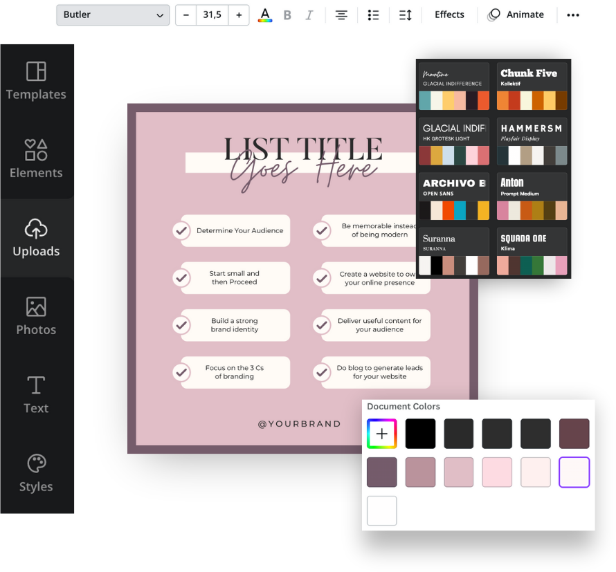 Export wow-looking graphics from Canva and post on your Instagram, Facebook, LinkedIn.